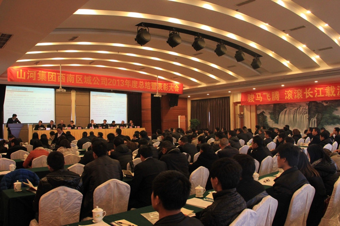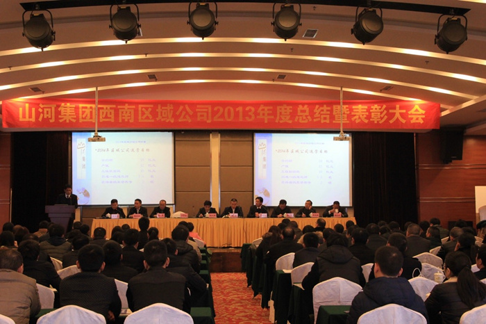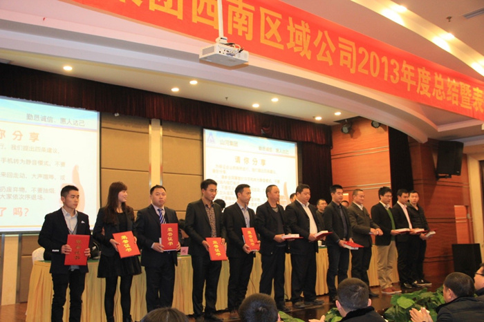 2013年12月28日,重庆铁山东方山水假日酒店会议大厅内张灯结彩,一派欢乐祥和的喜庆气氛,云博体育(中国)官方网站集团西南区域公司2013年度总结暨表彰大会在此隆重举行。此次年会以“理清思路、升级管理、品牌共建、成果共享”为主题,公司领导和员工共聚一堂,在喜迎元旦佳节的同时,总结过去、展望未来,群策群力,共商发展大计。