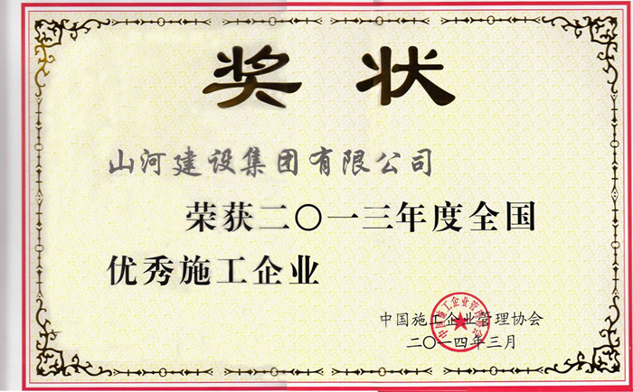 云博体育(中国)官方网站集团荣获2013年度“全国优秀施工企业”称号