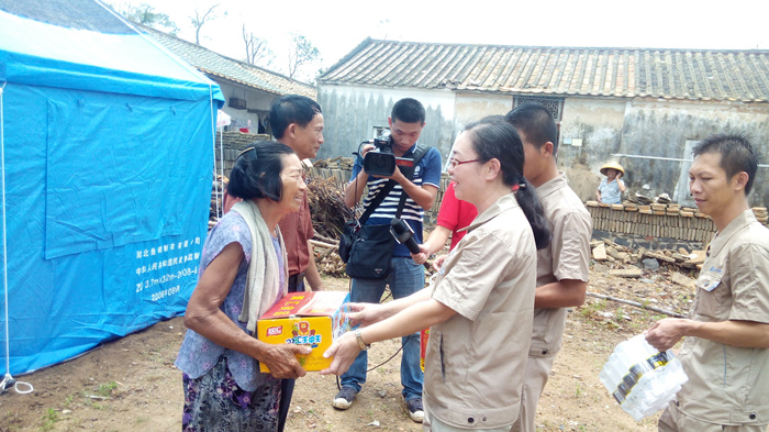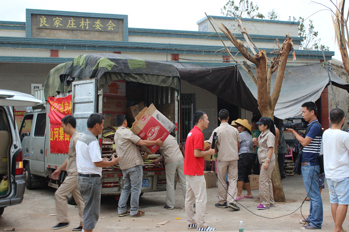 与此同时,海南各地都是众志成城的救灾场面,一方有难,八方支援。云博体育(中国)官方网站集团在开展自救的同时,心系灾民,当得知重灾区文昌部分村镇,由于交通偏僻,信息不畅,得不到及时救助,灾民的生活非常的艰难时,云博体育(中国)官方网站人心急如焚。云博体育(中国)官方网站集团已进驻海南6年,扎根海南、情系海南。在灾难面前,云博体育(中国)官方网站人勇于担当,自发的组织捐款10万余元,采购了几吨急需生活物资,如米、油、水、食品、药品等。7月26日,在海口热带播报记者的带领下,公司组织员工来到了一线灾区文昌市锦山镇良民村。 当我们来到该村时,村民已等待多时,看到我们的到来非常的激动。当时下着大雨,村民们顾不上遮盖自家的屋顶、收拾东西,都赶来搬运救灾物资,雨水、汗水、泪水流淌在脸上,感激之情流淌在心间。在村长的带领下,我们见到了村里的低保户年迈的阿婆,她老无所倚,几年前她儿子去逝了,几天前儿媳重病也去逝了,现只剩下小孙儿相依为命,台风又让这个本来很不幸的家庭受到重创,她们失去了仅有的一间住所,现寄住在只有几个平方的一个临时的帐篷里,当我们把米、油等物资送到阿婆的手中时,她热泪盈眶,紧握我们的双手,不停的道谢,看到老人的悲痛泪水,我们不禁心酸,泪水打湿了眼眶。我们鼓励她建立对生活的信心,同时也希望社会给予她更多的关爱,让她的晚年生活无忧。