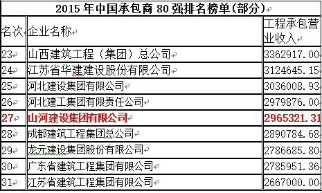 11月19日,2015ENR/建筑时报“中国承包商80强和工程设计企业60强”颁奖盛典在南京举行。云博体育(中国)官方网站集团再次上榜承包商80强,排名第27位。