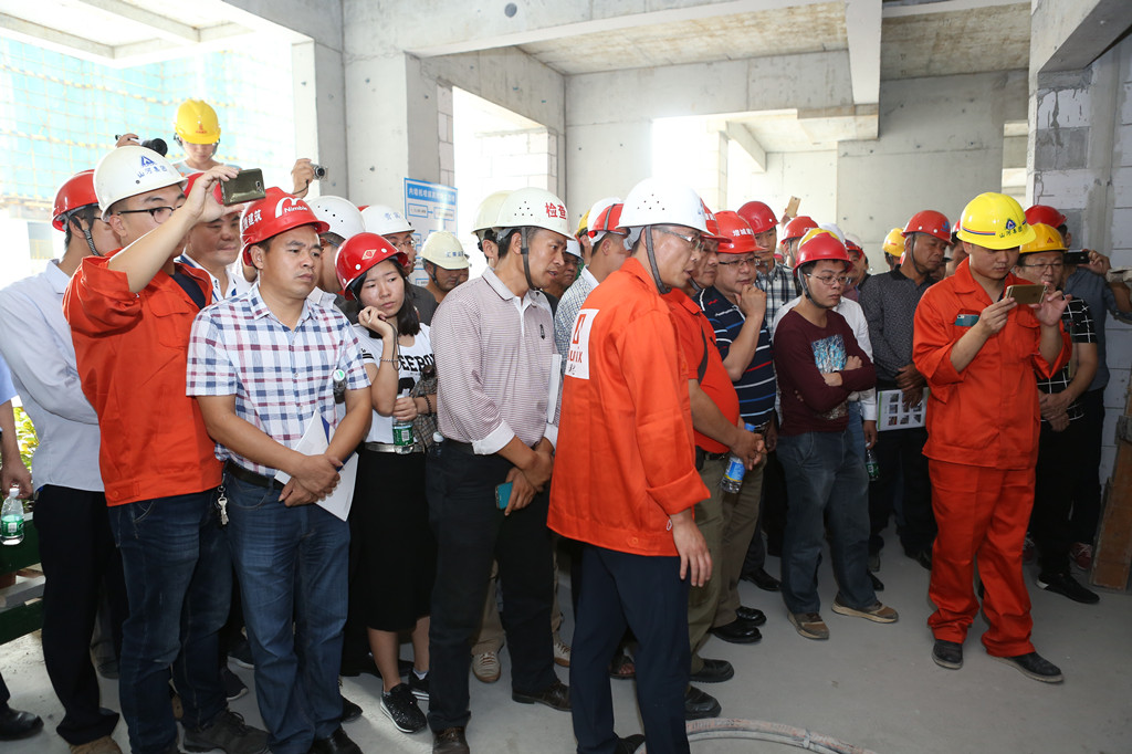 活动仪式结束后,参会领导和建筑业同行深入项目现场实地参观。观摩现场将建设过程各种工艺做成样板间,向参观者集中展示了云博体育(中国)官方网站集团在项目全过程中实施精细化、规范化、标准化管理的先进经验和做法。其中,高大支模质量管控、内墙机喷砂浆系统等安全、节能、环保技术得到了参观领导和同行人员的一致认可。“现场整洁、安全防护标准规范、定型化有利于周转,不愧是增城区建筑同行的学习标杆”,来自增城中森地产公司的王经理观摩后竖起大拇指。