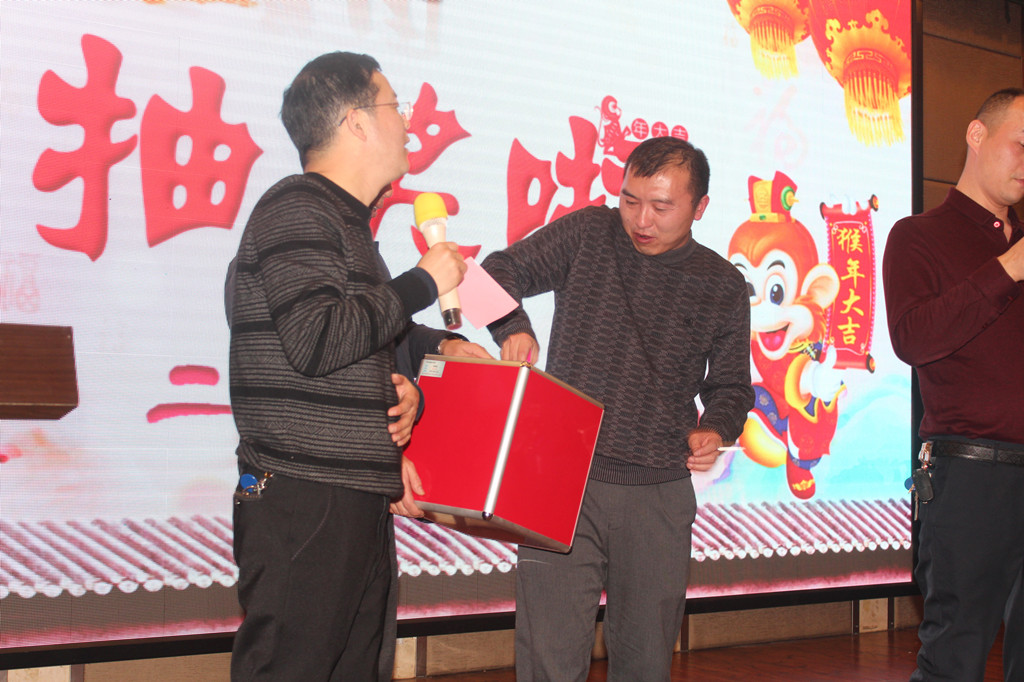 晚会中还穿插了抽奖环节,引起了大家的极大兴趣,随着三等奖、二等奖、一等奖的抽取,现场都沸腾起来了,不断掀起年会的高潮。此次晚会不仅给大家带来了欢声笑语,同时也拉近了同事之间的距离。公司领导与员工亲情互动、激动人心的抽奖活动,让掌声、欢呼声一直在会场上荡漾。最后,整场年会在一片和谐、温馨、欢乐的气氛中圆满结束。