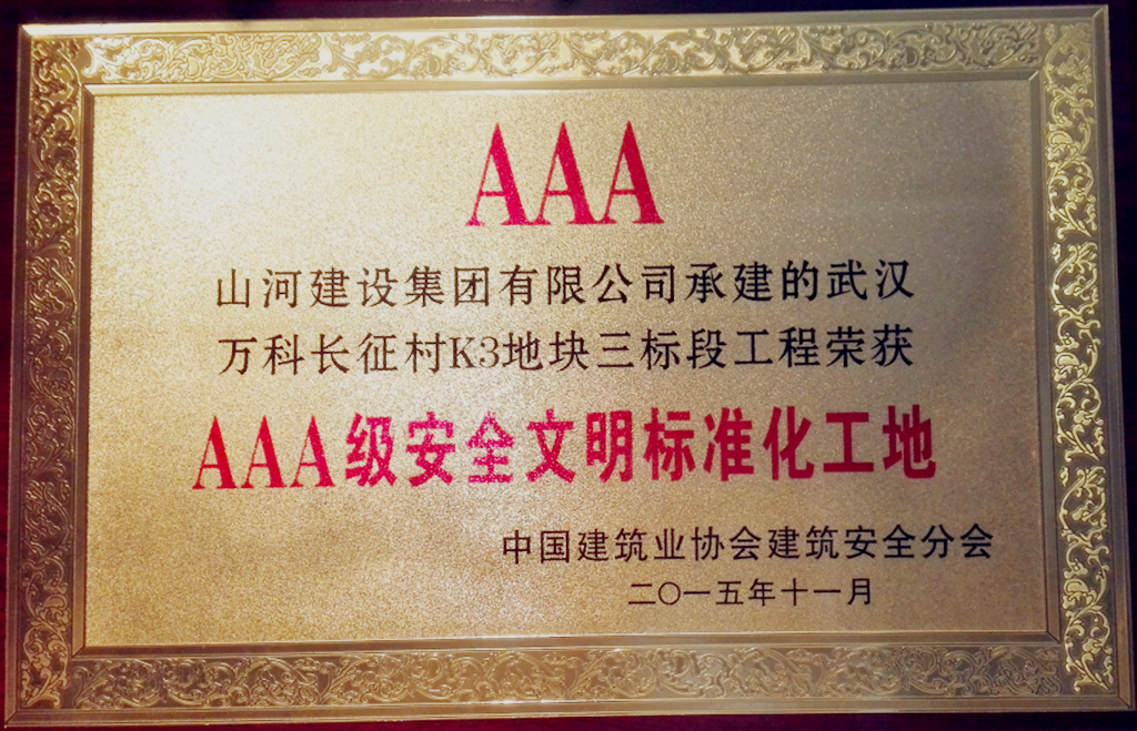 据悉,“AAA级安全文明标准化工地”是全国安全文明施工方面的最高奖项,被业内誉为安全文明施工方面的“鲁班奖”。此项评选严格遵照“控制数量、严格程序、规范行为、争创品牌”的原则,旨在规范施工安全生产工作,保障建筑职工生命安全与健康。