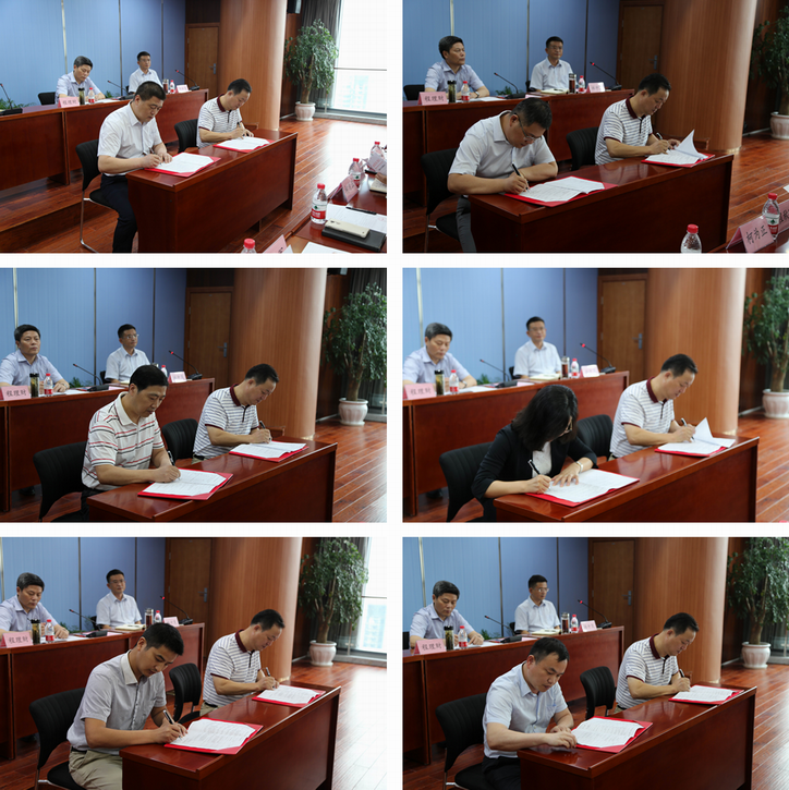 湖北公司执行总经理许金华依次与分管副总、技术部和财务部部门经理签订了《湖北公司2016年度全员经营任务指标责任状》、《经营班子成员年度经营目标责任书》及《部门年度目标考核责任书》。