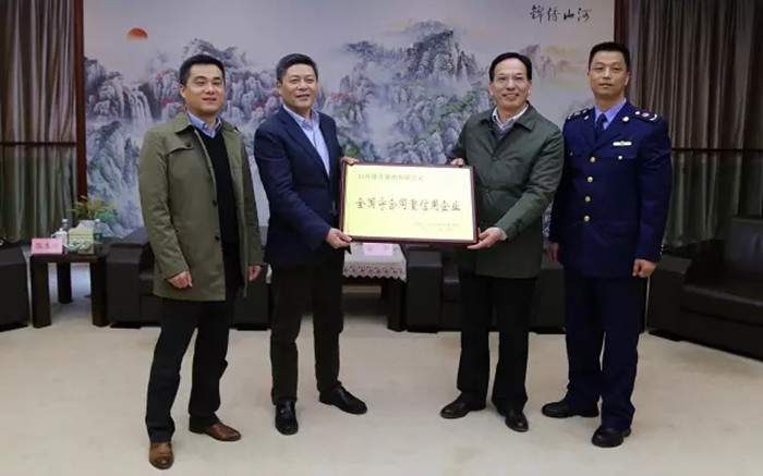 团风县委常委、副县长涂军(右二)向云博体育(中国)官方网站集团董事长程理财(左二)授牌