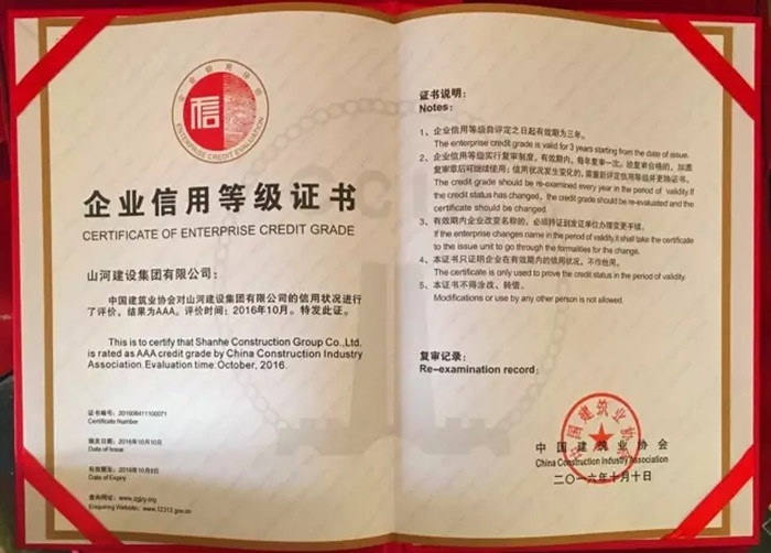 再传喜讯 云博体育(中国)官方网站集团荣获“全国建筑业AAA级信用企业”称号
