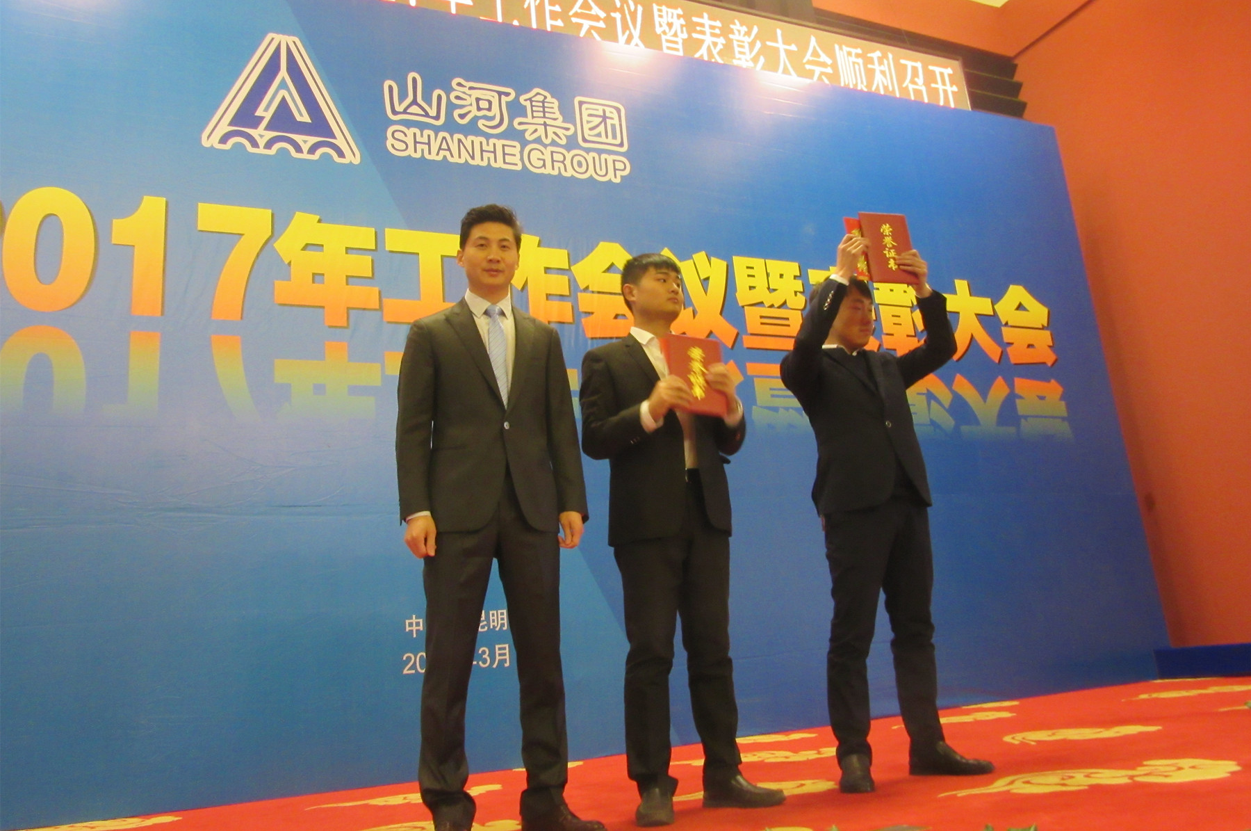 在欢快的乐曲声中,首先由云南公司副总经理李先宝为获得机关服务标兵的人员颁奖;副总经理方路标为获得优秀班组长的人员颁奖;常务副总经理谢立为获得优秀实习生及工程技术标兵的人员颁奖;最后由总经理聂鹏为获得青年标兵荣誉称号的人员颁奖。大会希望受表彰人员以此为起点,戒骄戒躁,再接再厉,在今后的工作中再立新功。公司号召全体员工以他们为榜样,学先进、赶先进,立足本职工作,争创新的业绩,为云南公司又好又快的发展作出更大贡献。