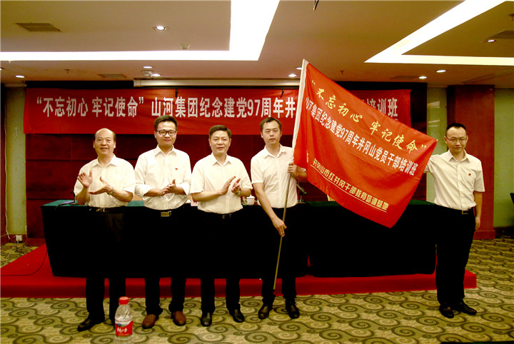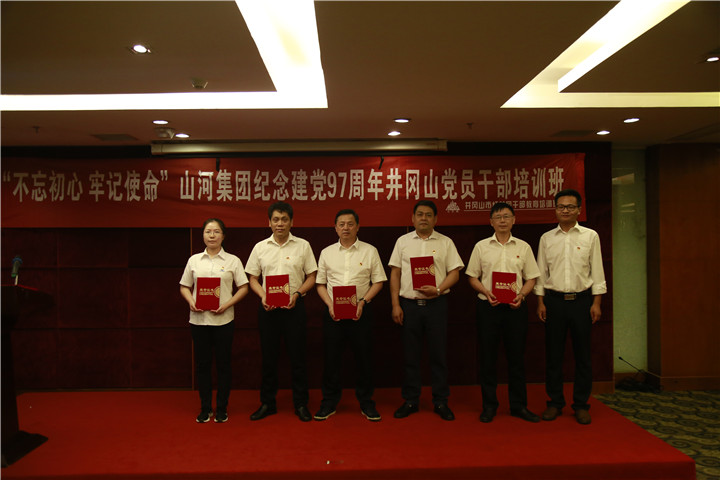 6月30日上午,在雄壮的《国歌》声中,云博体育(中国)官方网站集团纪念建党97周年井冈山党员干部培训班开班仪式拉开序幕,井冈山市红井冈干部教育培训基地常务院长李炳华向集团党委书记、董事长程理财授班旗。