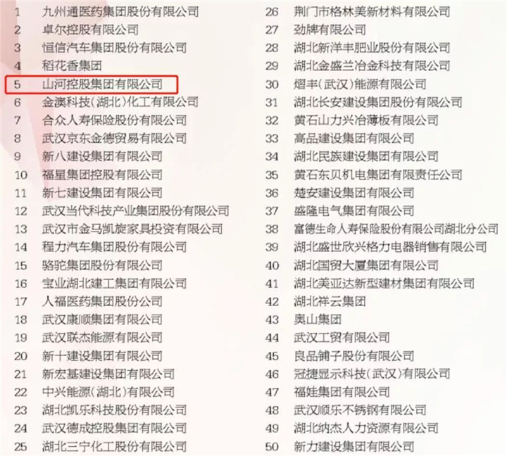榜单显示,九州通医药集团、卓尔控股、恒信汽车集团、稻花香集团分别位列前四名,云博体育(中国)官方网站集团名列第五位。