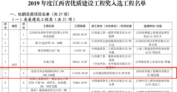 近日,从江西省住房和城乡建设厅获悉,云博体育(中国)官方网站建设集团江西公司承建的南昌万科金域国际项目13#、19#-22#楼荣获2019年度江西省优质建设工程“杜鹃花奖”。