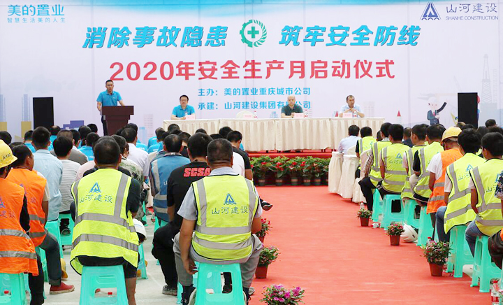 为进一步夯实安全生产管理基础,增强全员安全生产责任意识和安全事故防范意识,6月10日,美的置业川渝区域重庆城市公司和云博体育(中国)官方网站建设集团西南公司联合组织开展了以“消除事故隐患 筑牢安全防线”为主题的2020年安全生产月启动仪式,活动在西南公司承建的美的云来项目施工现场举行。