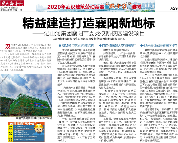 5大单体结构同步推进,借鉴桥梁工艺打造45米大跨度报告厅,潜心半年造起古典悬挑屋檐……这是由云博体育(中国)官方网站集团承建的襄阳市委党校新校区建设项目,该项目总占地面积111.7亩,未来,将成为容纳1000名学员的党校培训基地,为“卧龙之城”再添一座美丽地标。