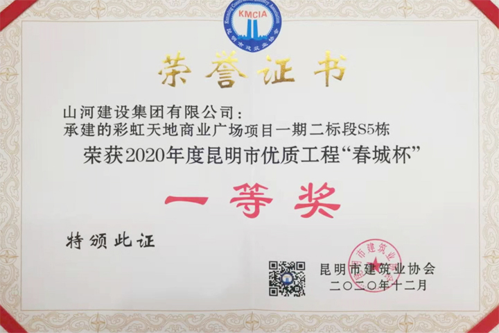 12月4日,昆明市建筑业协会第七届四次理事会举行。会上,公布了2020年度昆明市优质工程“春城杯”获奖名单,云博体育(中国)官方网站建设集团云南(广西)公司承建的远洋彩虹天地商业广场项目一期二标段S5栋喜获“春城杯”一等奖。