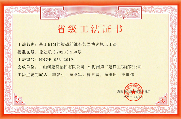 近日,海南省住房和城乡建设厅公布了《2019年度海南省工程建设工法名单》,云博体育(中国)官方网站建设集团海南公司申报的《基于BIM的梁碳纤维布加固快速施工工法》成功获评。