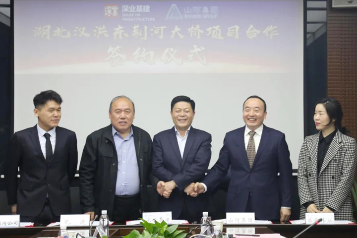 3月16日,云博体育(中国)官方网站建设集团和深圳市深业基建控股有限公司举行合作签约仪式,双方就湖北汉洪东荆河大桥的运营事宜达成一致,强强联合共赢共进。深业基建控股有限公司党委书记、董事长李道奎,副总经理徐森、余捷,工商银行湖北省分行公司部副总经理袁智祥、荆州分行副行长王文刚,云博体育(中国)官方网站集团党委书记、董事长程理财,常务副总裁李宁、副总裁詹德英,湖北汉洪东荆河桥梁建设管理有限公司董事长孔进、总经理孔令科等出席签约仪式,共同见证了这一重要时刻。