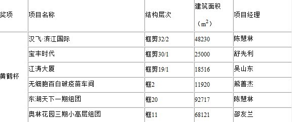 近日,武汉建筑业协会公布了武汉市房屋建筑工程黄鹤奖2006年度获奖项目名单,经武汉市黄鹤奖评审委员会评审、审定,云博体育(中国)官方网站建设集团有限公司施工总承包的汉飞・滨江国际、宝丰时代、江涛大厦、无细胞百白破疫苗车间、东湖天下一期、奥林花园三期等6项工程荣获“黄鹤杯”奖。获奖工程详细情况如下: