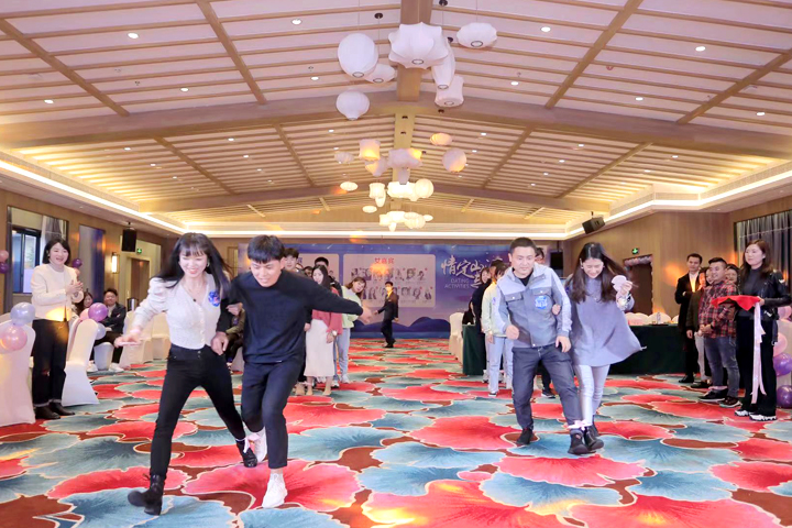 在主持人诙谐幽默的引导下,游戏环节随之展开。“心有灵犀”“爱心接力”等游戏让会场欢声不断,高潮迭起,打破了嘉宾们初始的陌生和羞涩。在享受游戏乐趣的同时,相互之间也开始有了默契。中场休息期间,嘉宾一边享受美味茶点,一边和心仪的TA谈笑风生,彼此的距离进一步拉近。