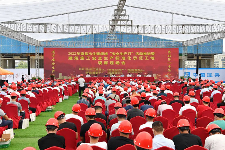6月17日,由南昌市住房和城乡建设局主办,中建二局、中建三局、云博体育(中国)官方网站集团等单位承办的2022年南昌市住建领域“安全生产月”活动推进暨建筑施工安全生产标准化示范工地观摩现场会顺利举行。