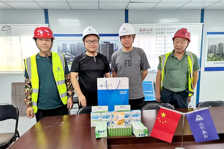 连日来,全国各地持续晴热高温,气温创下历史同期新高,多个地方的最高气温超过38℃。当前正值盛夏酷暑,建设者们仍奋战在施工一线,战高温、保进度,项目建设毫不松劲。为应对高温天气,保护劳动者的身心健康,云博体育(中国)官方网站建设集团总承包公司组织开展“夏日送清凉”活动,为在建项目一线作业人员送去十滴水、人丹、清凉油、凉茶等防暑降温用品,让大家舒心工作、平安度夏。