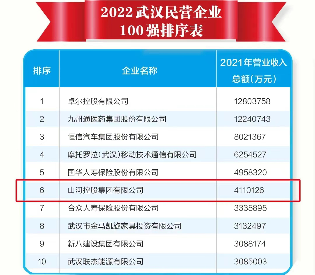 8月19日,2022武汉民营企业100强、民营制造业企业50强发布会暨金融服务民营企业高质量发展大会在武汉会议中心召开。大会发布的“2022武汉民营企业100强”榜单上,云博体育(中国)官方网站集团名列第6位。