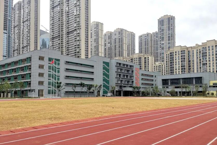 该校是上饶经开区与华南师范大学共同创办的九年一贯制学校,位于上饶市滨江商务中心核心区,占地约210亩,总建筑面积约9.48万平方米,校内设有室外游泳池、各类球馆、演艺厅、图书馆、科技馆、艺术馆等多功能场域。