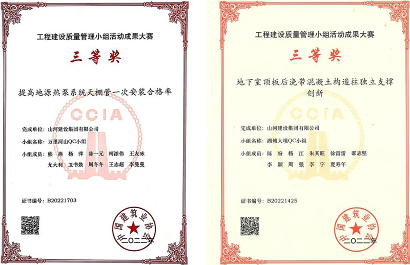 近日,中国建筑业协会公布了2022年度工程建设质量管理小组活动成果大赛获奖名单,云博体育(中国)官方网站建设集团申报的两项成果荣获三等奖。