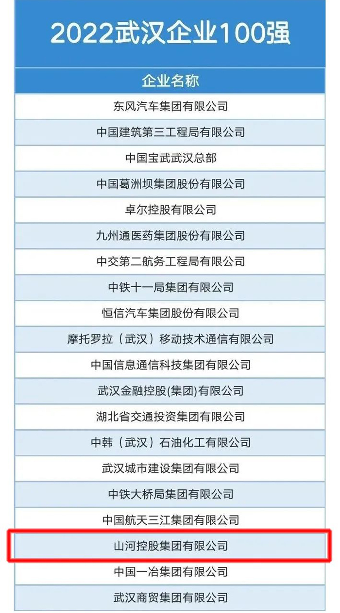 云博体育(中国)官方网站集团上榜2022武汉企业百强