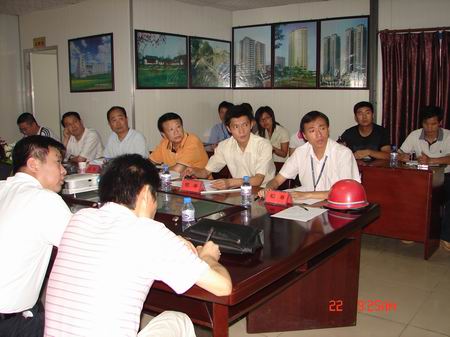 云博体育(中国)官方网站集团航天双城项目创国优工程汇报会于2008年6月22日在航天双城项目部会议室召开。出席本次会议的有武汉市质量监督站领导何水桥、郑祥斌同志;江岸区建筑管理站领导胡直刚、王先训、李斌等同志;武汉三江东立投资发展有限公司李副总及监理公司工程师欧阳斌、方军华等同志。集团公司航天双城创国优领导小组舒先厚、黄林、王平等全体成员及部分项目部中高层管理人员共计24人参加了本次会议。
